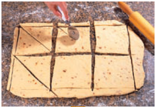 Prepare a “panquequinha” da fermentação utilizando uma xícara (chá) de água morna. Em uma travessa grande, coloque a farinha de trigo e abra uma cavidade. Despeje a “panquequinha” fermentada. Acrescente os ovos, a manteiga, o queijo ralado, o Creme MAGGI e misture, incorporando a farinha de trigo aos poucos até desgrudar das mãos. Sove a massa por cerca de 10 minutos, cubra e deixe crescer em local aquecido até dobrar de volume. Sove a massa novamente, abra com um rolo, formando uma tira comprida e larga (cerca de 30cm de largura). Corte a massa em triângulos e recheie. Enrole os triângulos começando da parte mais larga para a mais fina. Curve os pães em forma de meia lua e coloque-os em assadeira untada e enfarinhada, deixando espaço entre um e outro. Cubra novamente e deixe descansar até dobrar de volume. Pincele a gema e leve para assar em forno médio (180°C), preaquecido por cerca de 30 minutos ou até ficarem dourados.